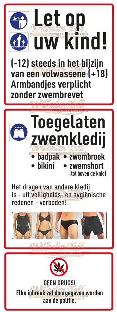 Afin de garantir la sécurité et la tranquillité dans le parc aquatique, certaines règles doivent être respectées. Les enfants de moins de 12 ans ne peuvent se baigner que sous la surveillance d'un adulte. Les jeunes jusqu'à 21 ans sont les bienvenus s'ils sont accompagnés de leurs parents ou tuteurs. Les groupes de jeunes sans surveillance ne sont malheureusement pas admis. Les associations de jeunesse reconnues sont les bienvenues sur réservation préalable, à condition qu'elles soient en uniforme et accompagnées.